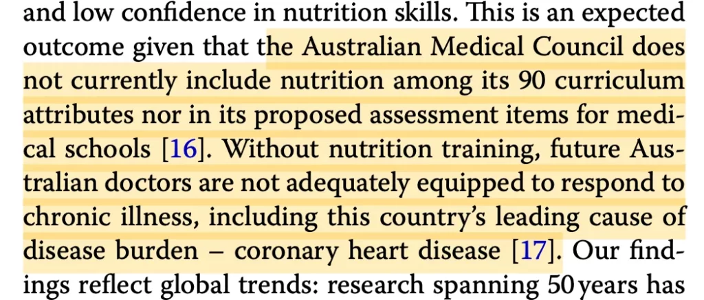 On average, Australian medical students get only 20–25 hours total of nutrition teaching across the entire 6-year degree